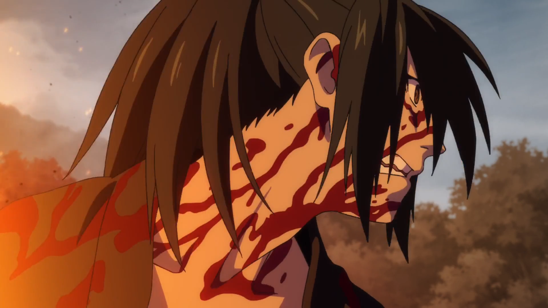 For the first half of the series or so, the show remains mostly episodic. Hyakkimaru and Dororo make it to a new area that's being ravaged by some kind of monster and vow to defeat while befriending the locals along the way. On a purely technical level, the animation's gorgeous. Studio MAPPA, who's responsible for some great shows like Kids On The Slope and the fan favorite Yuri!!! On ICE, brought their A-game. The fight scenes with these grotesque demons, some inspired by traditional Japanese legend, who range from mutated sharks to the Nue; a twisted cross between a lion, a monkey, and a snake. These fights are brutal too. Lots of blood and sliced limbs and all sorts of carnage brought on through Hyakkimaru's instinctual and devastating combat prowess. We have to say, Dororo isn't for children.