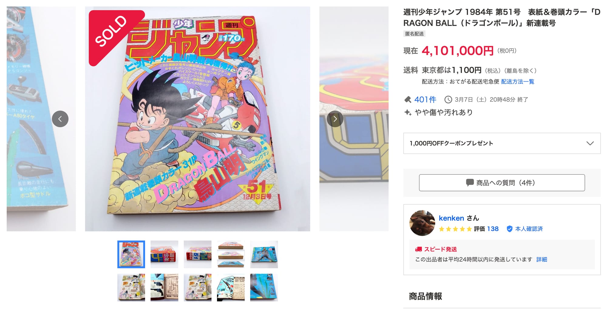 The first appearance of Dragon Ball in Weekly Shonen Jump 1984's issue 51 is easily one of (if not the) most desirable collectibles in the hobby, and in just the past couple days it has broken the record for highest public sale twice. At the start of the year the record had been set by a different copy of this same issue, sold in March 2025 via Mandarake for ¥3,800,000. Over the weekend this issue marked 2 separate sales breaking ¥4,000,000 each.