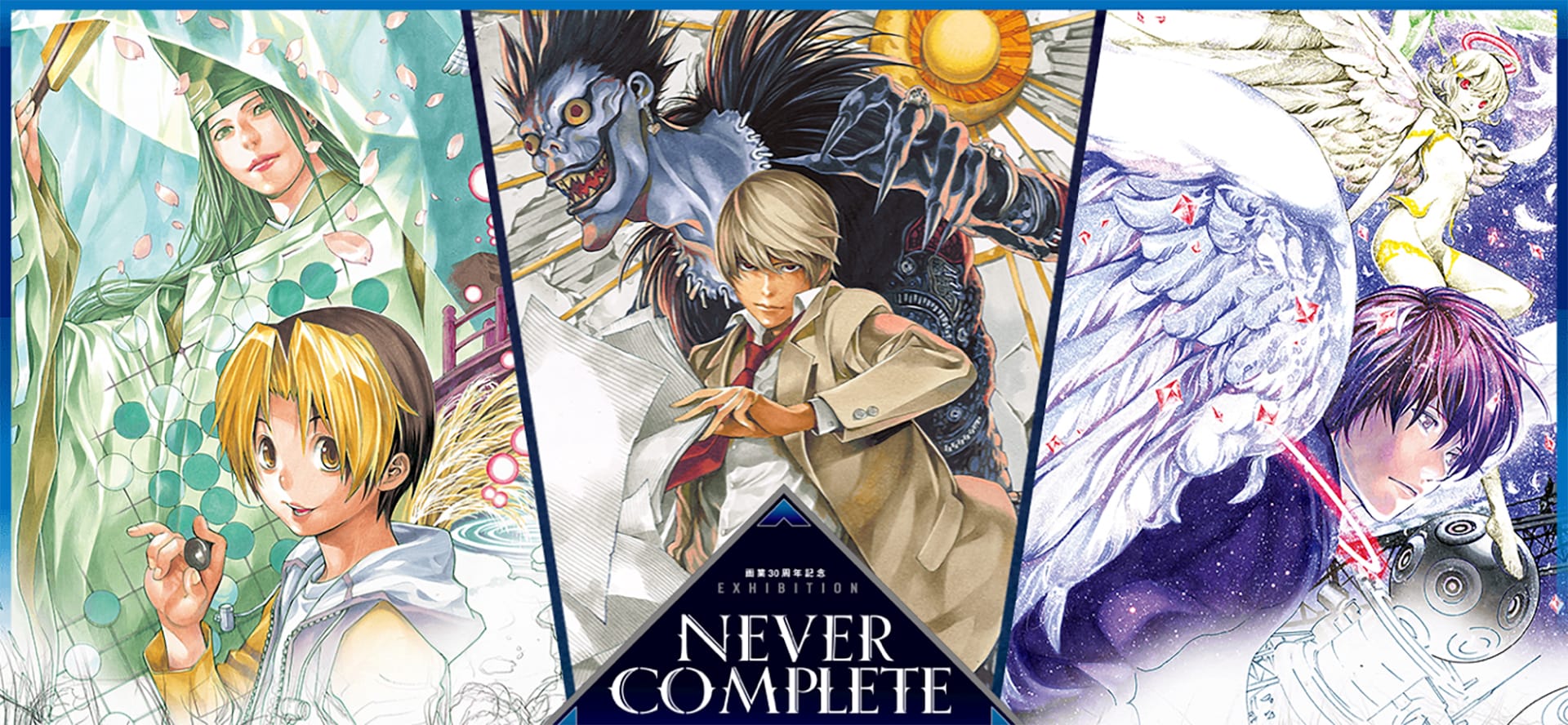 This new exhibit will focus on the illustrative work of Takeshi Obata throughout his career. This will obviously include Death Note, but will also include his work on Bakuman and more from throughout his career. The first section, focusing on this work, will include manuscripts from iconic scenes and attempt to showcase his signature style and his approach to art. The illustration section of this exhibit will focus on art such as the covers of various mangas, collaborative illustrations and more. The third section, titled 'Never Complete' will focus on his approach for art going into the future.