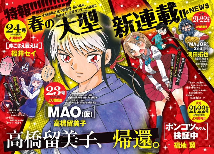 Rumiko Takahashi's MAO will be released in Weekly Shonen Sunday 2019 issue 23!